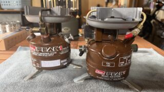 燃料漏れで停止したPeak1の代わりに、1981年5月製の2レバーPeak1を導入。2台を並べて、刻印の有無・焼け方・デカールや雰囲気の違いを写真ベースで比較。81年式は使えそうだが火力とレバー感触が気になり、次回キャンプで実地確認へ。